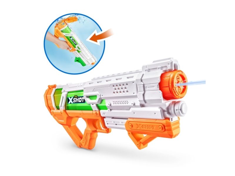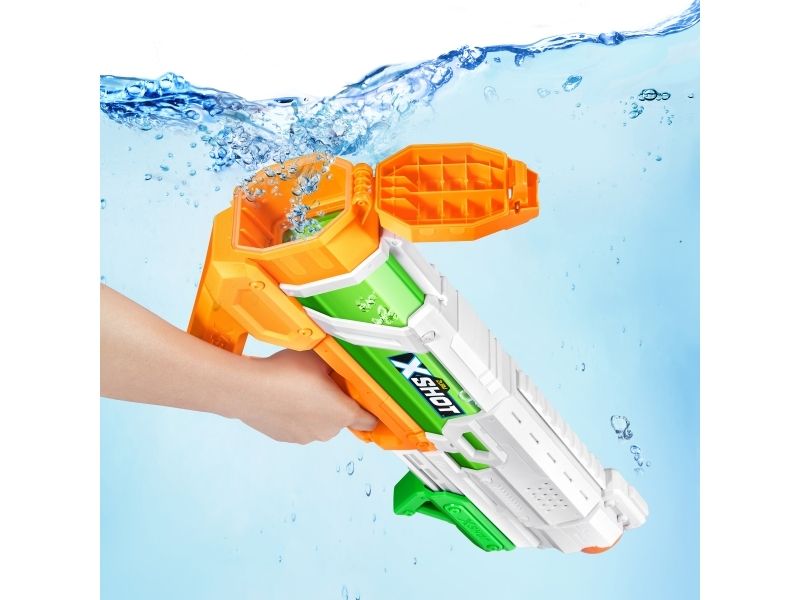 1. FAST-FILL: X-SHOT Fast-Fill är den snabbast fyllande vattenbläster som någonsin skapats. Fast-Fill låter dig fylla på på 1 sekund och komma tillbaka till vattenstriden långt före dina motståndare. Bara sänk, fyll och stäng med vår snabba förseglingsteknik så att du kan slå din motståndares fyllningstid så att du kan komma igång igen!