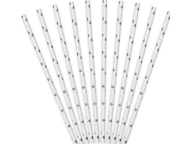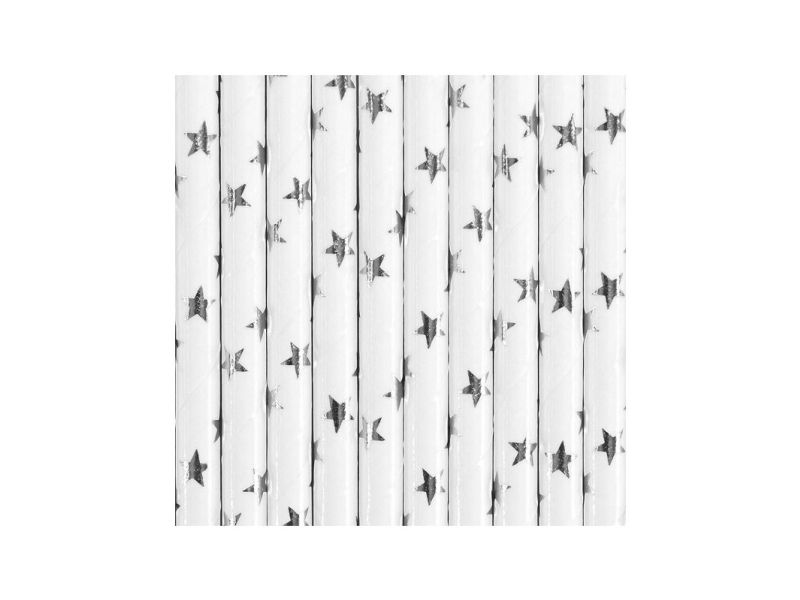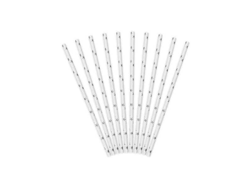 Party Deco papperssugrör med stjärnor, silver, 19,5 cm, 10 st (universella)