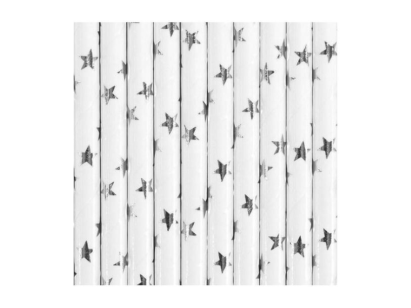 Sugrör vita med silverstjärnor