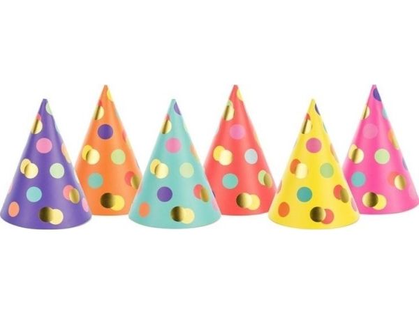 PartyDeco CPP25, Party hat, Multifärg, 6 styck, Födelsedag, 160 mm, 11 cm