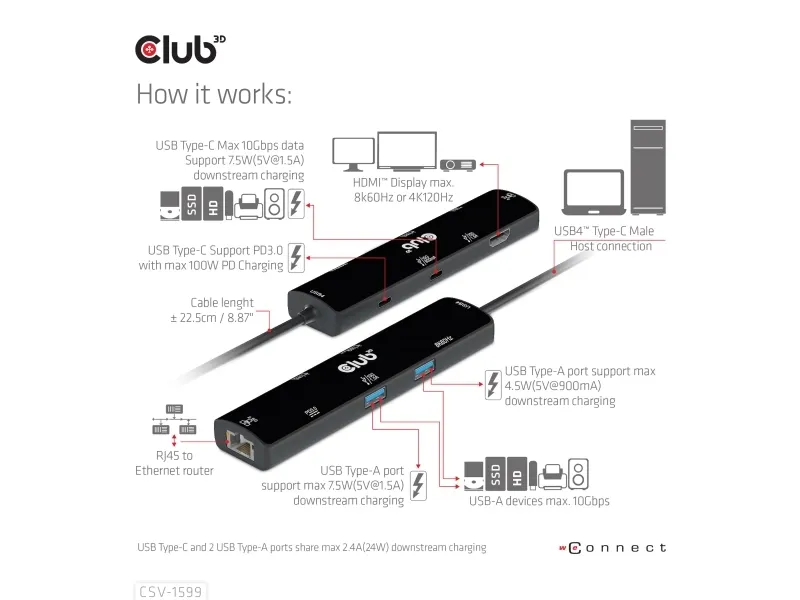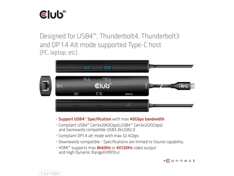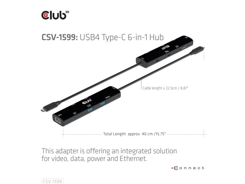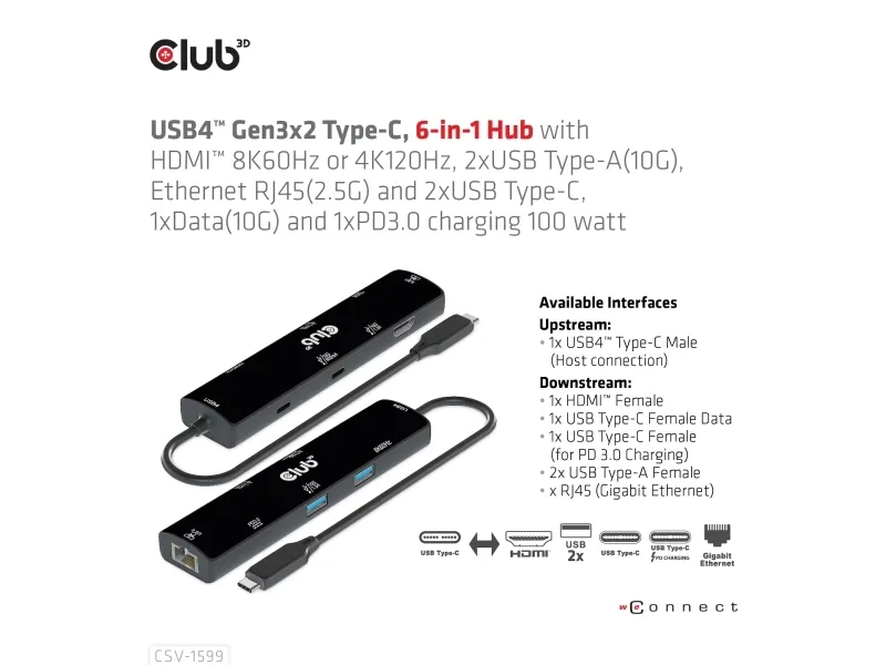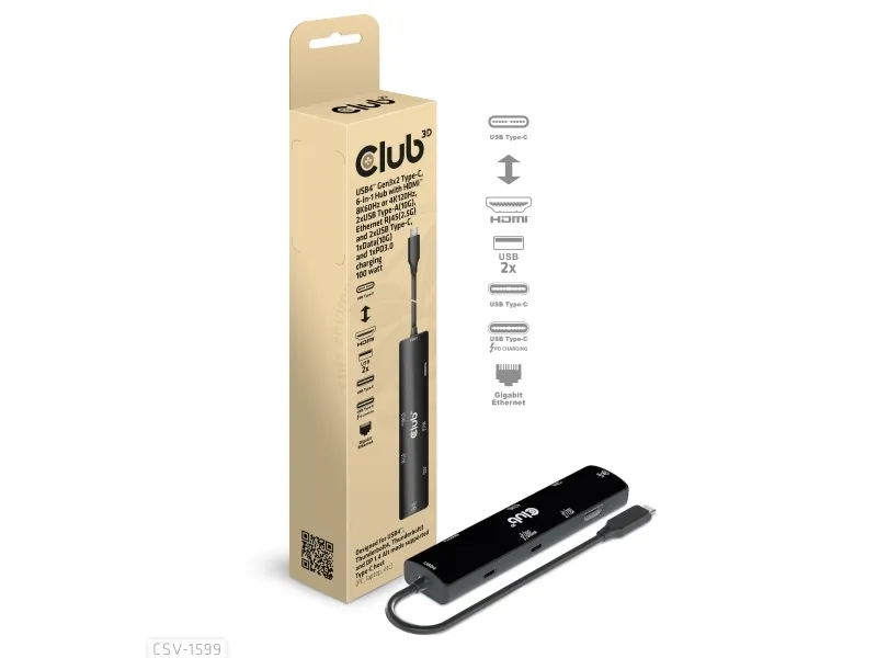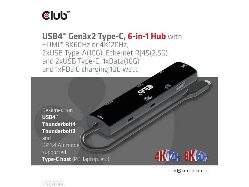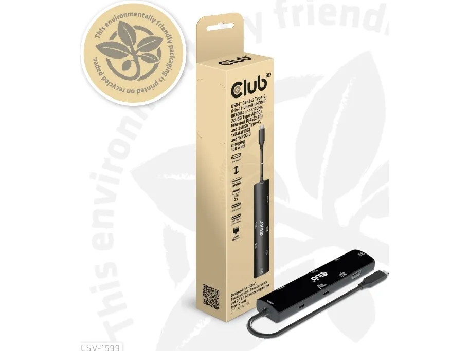 Club 3D 6-in-1 Hub - dockningsstation - USB4 - HDMI - 1GbE