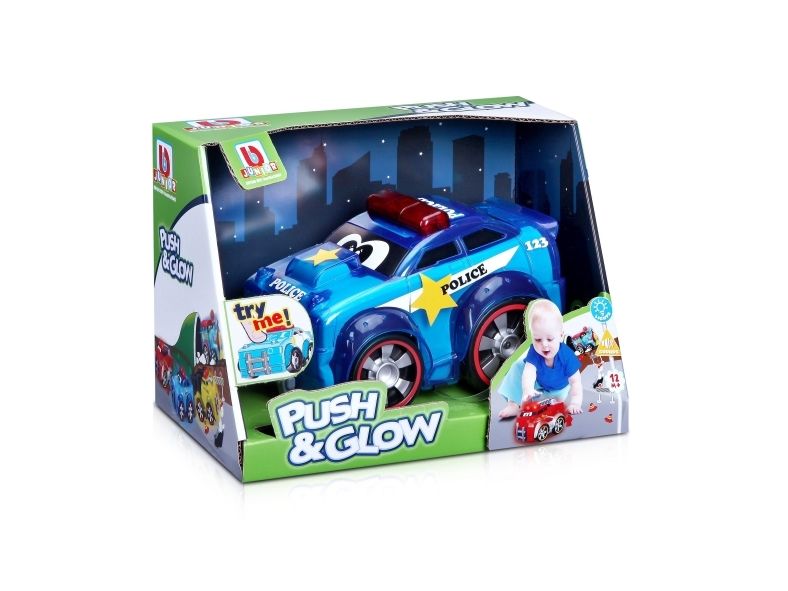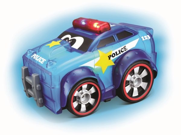 Håll stadens gator säkra med hjälp av din egen snygga polisbil! Lamporna blinkar och sirenerna tjuter när du kör iväg med den söta och roliga självlysande polisbilen. Kräver 2 st. AA-batterier (ingår). Från 18 månader.
