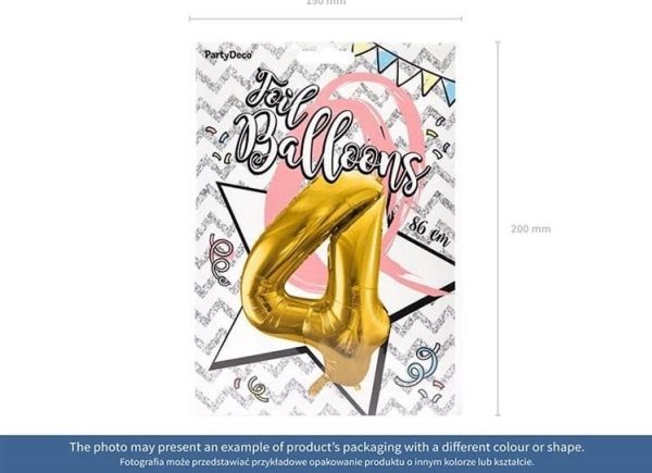 Party Deco Folieballong Siffran "4", 86 cm, guld universal