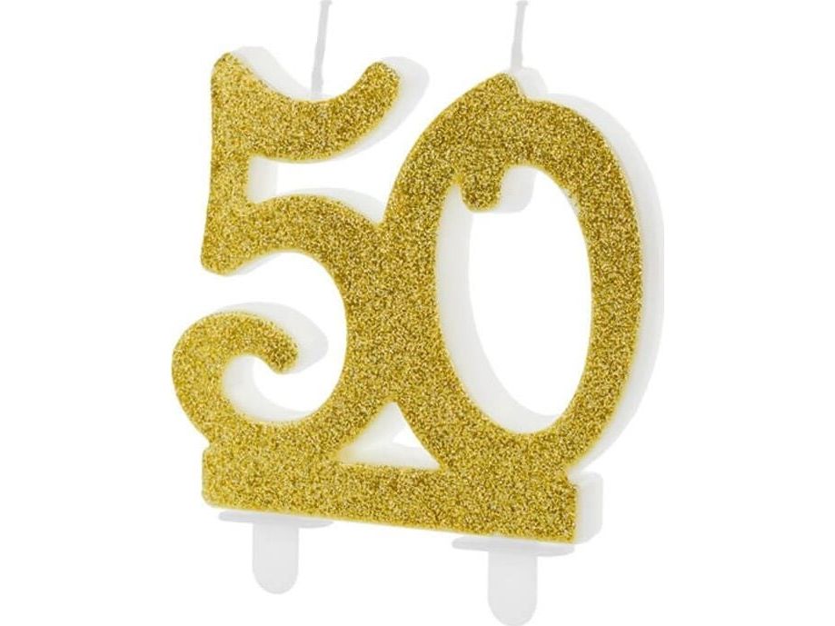 Party Deco 50-årsjubileumsljus med guldglitter - 1 st universal