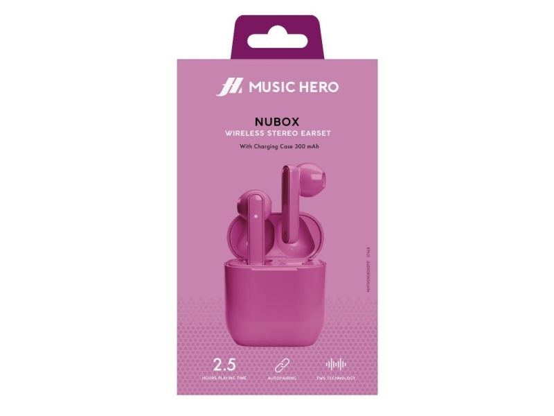 Nubox äkta trådlösa stereo-hörlurar. Rosa