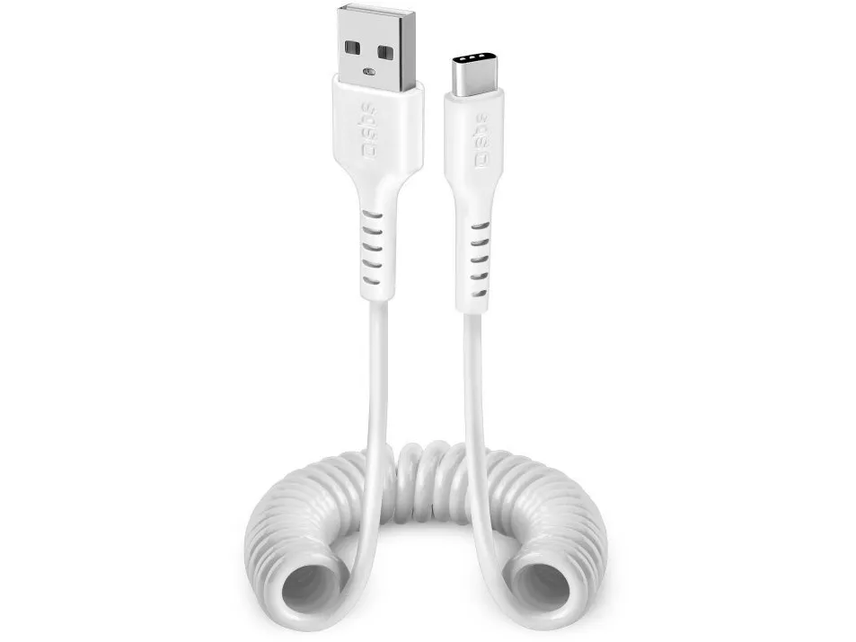 SBS data- og opladning spiralkabel USB 2.0 - USB C. 17-100cm. Hvid. USB A (han) - USB C (han)