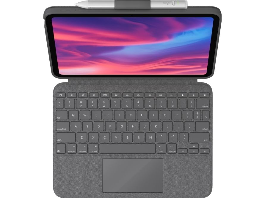 Logitech Combo Touch är utformad för sömlös integration med Apple iOS-enheter och erbjuder ett tangentbord och ett foliofodral i ett mångsidigt paket. Med tillgång till portar och kontroller kan användarna hålla sig uppkopplade och ha kontroll när de är på språng, vilket gör det idealiskt för produktivitet och kreativitet. Den integrerade Apple-pennhållaren ser till att verktygen alltid finns till hands, vilket höjer användarupplevelsen. Combo Touch har en inbyggd styrplatta och förbättrar navigering och effektivitet genom att erbjuda ett intuitivt sätt att interagera med appar och dokument.