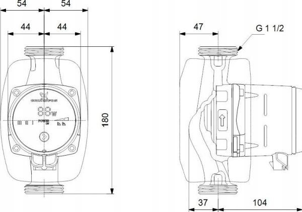 Grundfos cirkulationspump för värme C.O - ALPHA1 25-60 N 180 1x230V 50Hz 6HDH