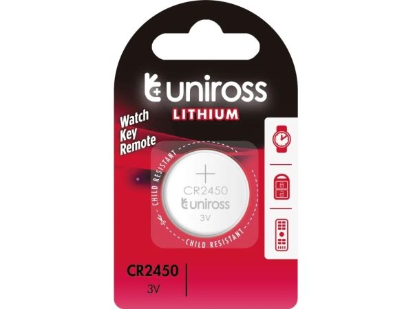 Uniross U1CR2450, Engångsbatteri, CR2450, Litium, 3 V, 1 styck, Silver