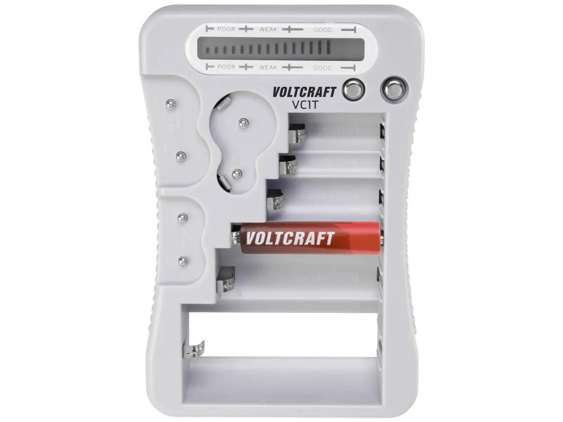 batteritestare som är lätt att använda för många olika batterier och knappceller. Displayen visar kapaciteten i ett tydligt stapeldiagram.Perfekt för användning hemma, på resande fot eller på jobbet.
