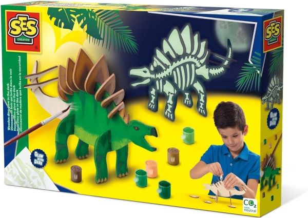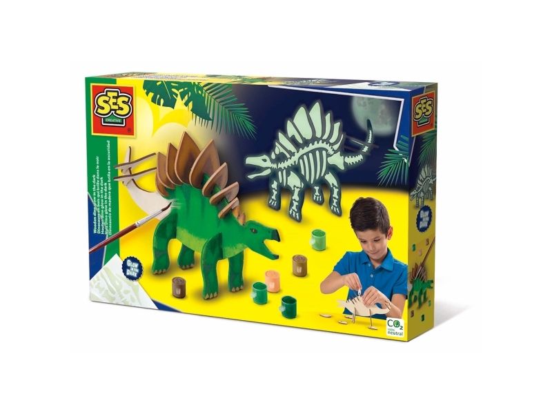 SES Creative Wooden dino glow in the dark, Pysselset för barn, 5 År, Multifärg