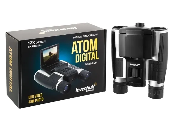 The Levenhuk Atom Digital DB20 LCD Binoculars are great for observing and shooting in daylight. The device is equipped with a flip-down LCD screen and video recorder, so you can observe nature and view any distant objects as well as record what you see in photo and video format, viewing recorded footage directly on the device display. Hunters, hikers, birdwatchers, and naturalists will truly appreciate the advantages of binoculars.