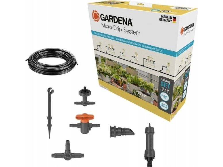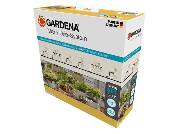 Bevattna dina balkongväxter på ett tillförlitligt och vattenbesparande sätt med Micro-Drip-Irrigation balkongset från Gardena. Micro-Drip-System-setet är perfekt för att förse upp till 15 enskilda krukväxter eller växter i blomtråg och baljor med vatten på olika höjd. Alla nödvändiga komponenter ingår i Ready-2-Use-setet och du kan installera det med bara några enkla steg. Tack vare den unika Easy and Flexible-anslutningstekniken kan Micro-Drip-systemet snabbt byggas om eller utökas när som helst. Använd Inline Drip Heads flexibelt i blomlådor och som Endline Drip Heads för enstaka krukväxter. Mikro-droppsystem. Ta hand om dina växter och varje dyrbar droppe. Enkel, exakt, vatten- och tidsbesparande bevattning.