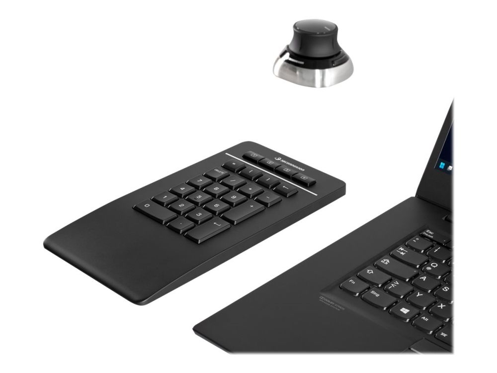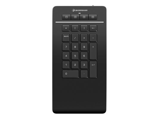 3Dconnexion Numpad Pro är ett mångsidigt och ergonomiskt tillskott till alla PC-användares utrustning. Den här knappsatsen är utformad för att uppfylla behoven hos både proffs och entusiaster och har justerbar höjd för optimal komfort och en mängd olika anslutningsmöjligheter, inklusive 2,4 GHz trådlöst, Bluetooth LE och USB, vilket garanterar kompatibilitet med praktiskt taget alla system. Det uppladdningsbara litiumpolymerbatteriet ger bekvämligheten med utökad användning utan det ständiga behovet av laddning. Numpad Pro uppfyller dessutom flera internationella standarder, t.ex. FCC och EU RoHS, vilket understryker dess kvalitet och tillförlitlighet. Oavsett om det gäller arbete eller fritid är Numpad Pro konstruerad för att öka produktiviteten och ge en bekväm och sömlös skrivupplevelse.