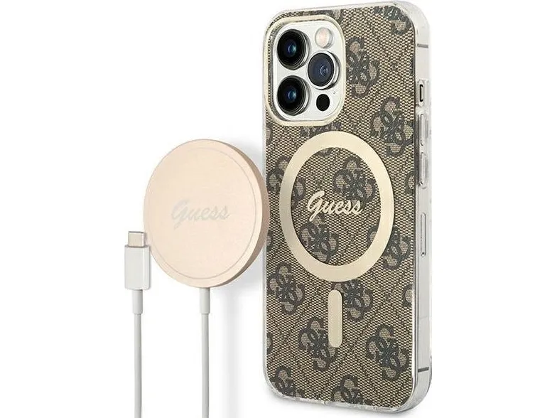 Zestaw Guess GUBPP13LH4EACSW Case+ Charger iPhone 13 Pro brązowy/brown hard case 4G Print MagSafe