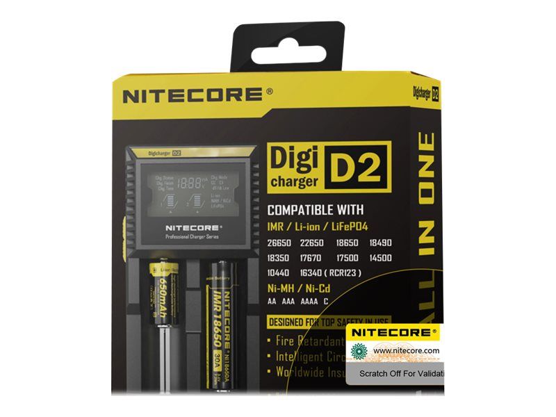 NITECORE Digicharger D2 - Batteriladdare - 2 x batterier laddas - 500 mA