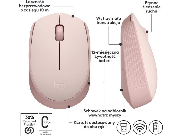 Logitech M171 - Mus - höger- och vänsterhänt - trådlös - 2,4 GHz - trådlös mottagare (USB) - Rose