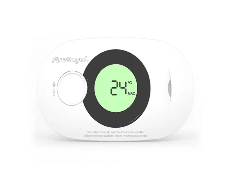 - Ventilate instructionFireAngel FA3322-EUX10. Detected gas types: Carbon monoxide (CO), Detector type: Electrochemical detector, Best uses: Home. Product colour: White, Housing material: Acrylonitrile butadiene styrene (ABS), Display type: LCD. Power source type: Battery, DC, Battery technology: Lithium, Battery voltage: 3 V. Width: 129 mm, Depth: 31 mm, Height: 76 mm. Quantity per pack: 1 pc(s)