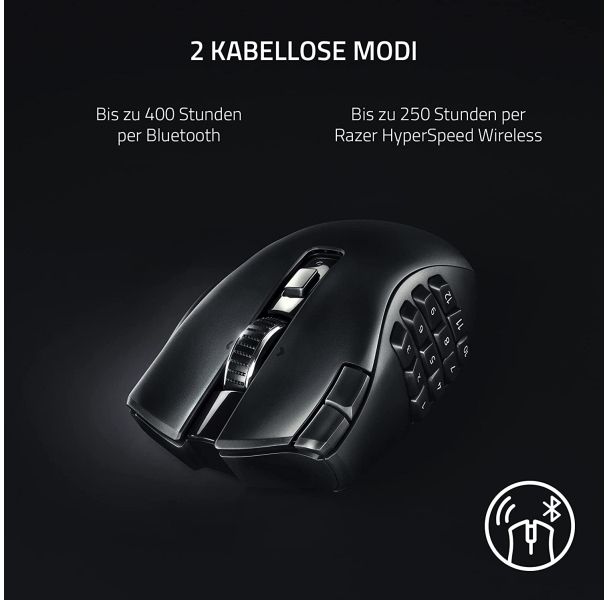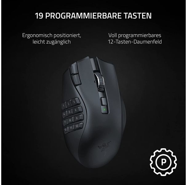 Rise to the top of your guild with the Razer Naga V2 HyperSpeed - a wireless ergonomic MMO mouse. Optimize skill rotations with an arsenal of 19 buttons and a dual-mode scroll wheel. Power through raid progression with potent wireless performance backed by many hours of battery life on HyperSpeed Wireless.