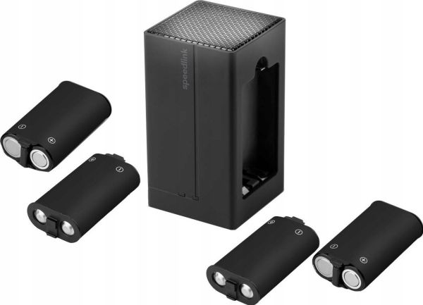 Always ready to go! Unwanted gaming interruptions due to empty batteries are a thing of the past with the JUIZZ USB Dual Charger. The compact charger and four powerful batteries ensure your Xbox Series X®/S and Xbox One® controllers don’t run out of power. Charge two batteries at the same time while the other two are in use - it’s possible because of the clever design of the JUIZZ. Thanks to the small dimensions and simple power supply via a USB-A plug, the charger is also ideal for on the go.SPEEDLINK JUIZZ. Gaming platforms supported: Xbox One, Xbox Series S, Xbox Series X, Product type: Battery charging set, Product colour: Black. Battery technology: Nickel-Metal Hydride (NiMH), Battery capacity: 1000 mAh, Battery life (max): 32 h. Cables included: USB Type-A to USB Type-C. Package type: Hanging box. Weight: 115 g