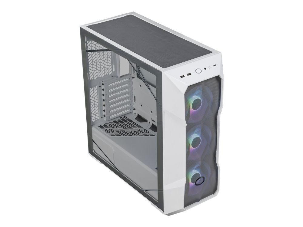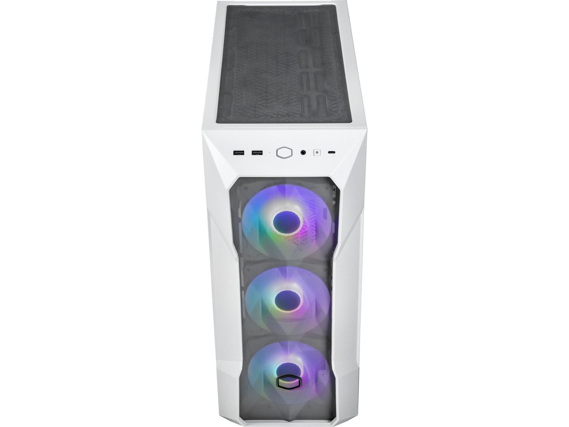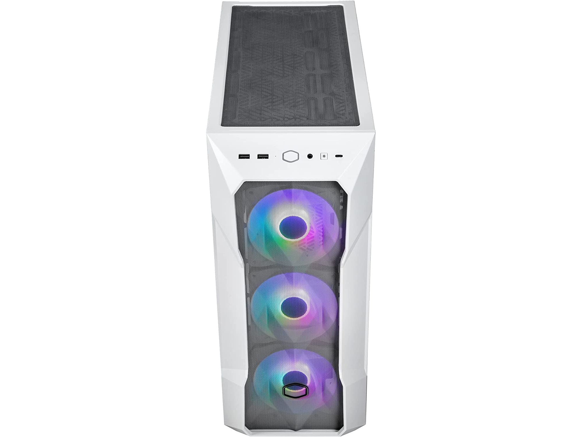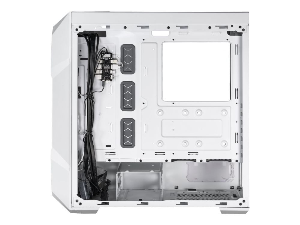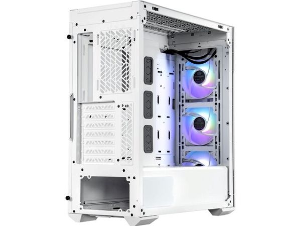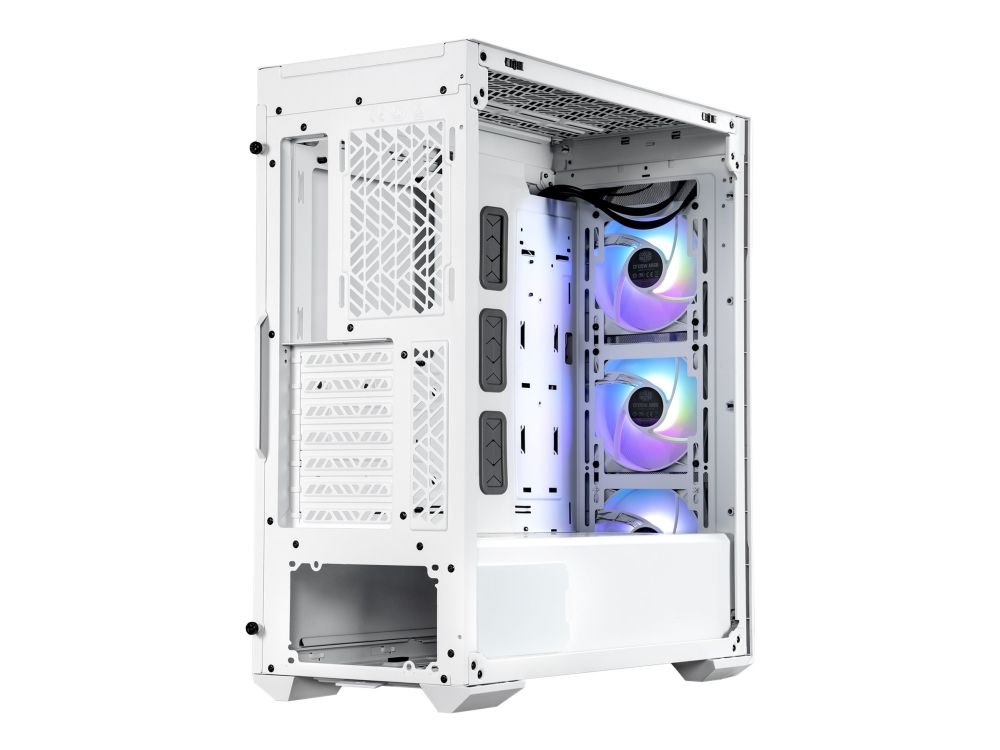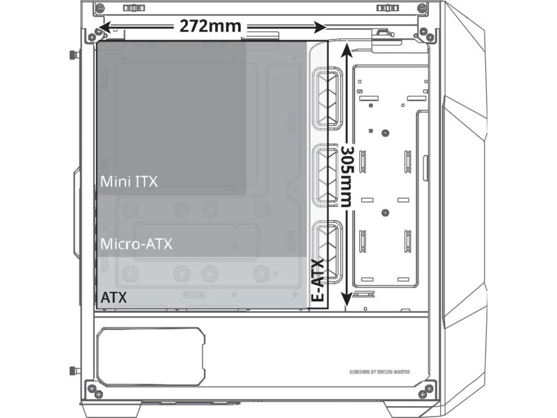 Front: 120 mm fläkt x 3 / ARGB-fläkt Bakre: fläktmontering / stöd för 1 x 120 mm fläkt Ovansidan: fläktmontering / 3 x 120 mm eller 2 x 140 mm fläkt stöds