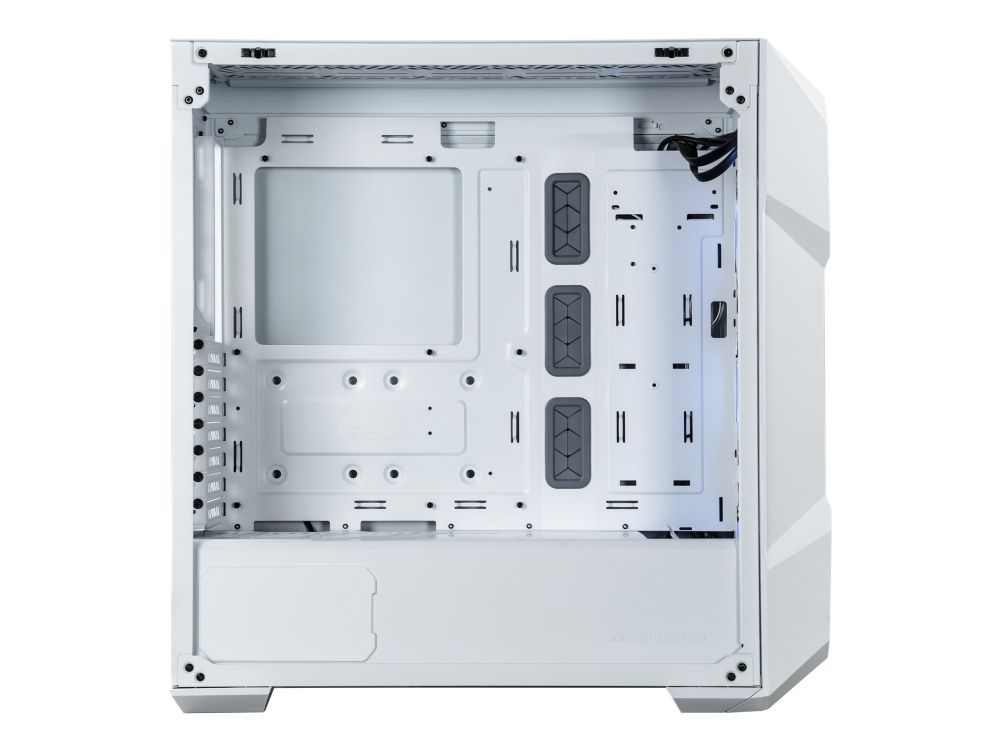 Stöder 120 mm element bak, stöder 120/140/240/280/360 mm element i främre panel, stöder 120/140/240/280/360 mm element högst upp, frontpanel med nät, PSU-hölje med löstagbart skydd, borttagbar HDD-bur, borttagbar övre panel, verktygsfri sidopanel, kabelhanteringssystem (19 mm fritt utrymme), nedre dammfilter, främre dammfilter, dammfilter till överdel