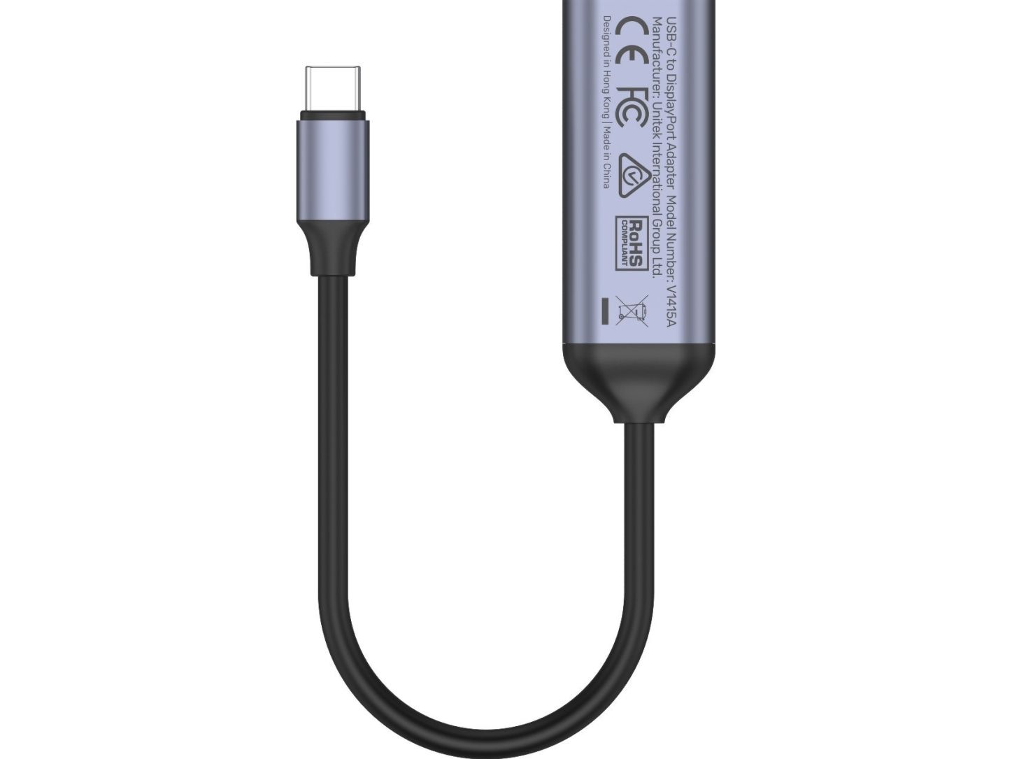 Unitek V1415A - USB-/DisplayPort-adapter - USB-C (hane) till DisplayPort (hona) - DisplayPort 1.4 - 15 cm - 4K120Hz stöd, 8K60Hz stöd - rymdgrå