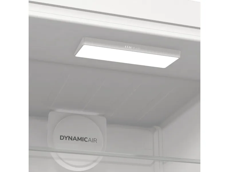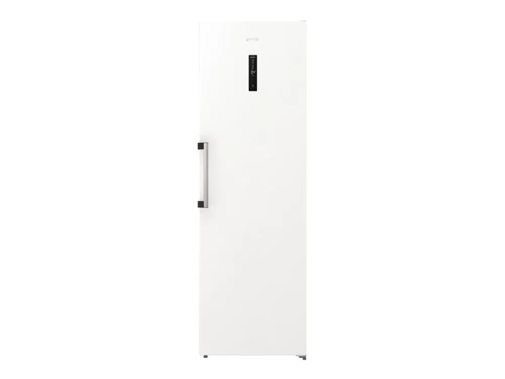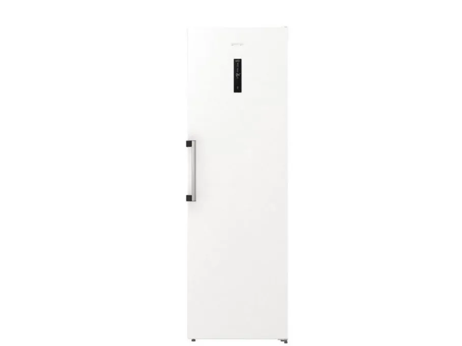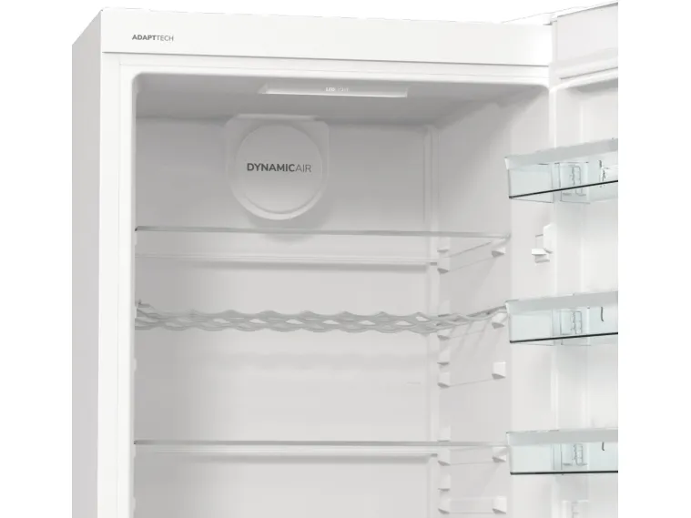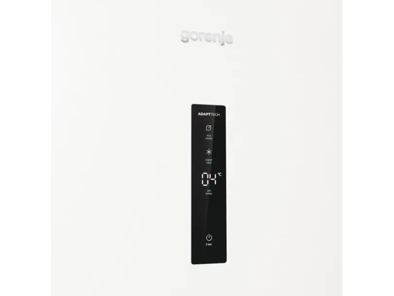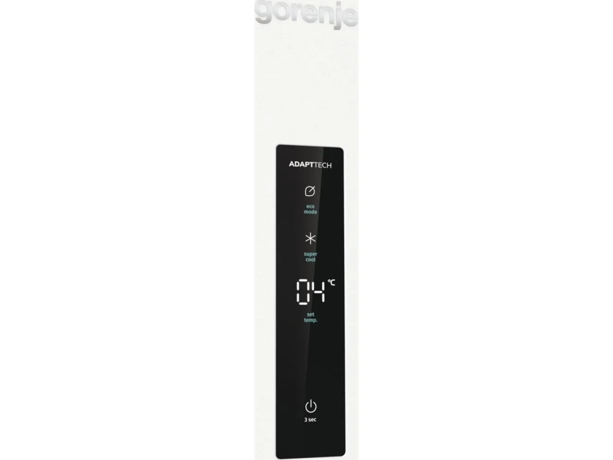 The Gorenje G600 R619EAW6 refrigerator offers a spacious total net capacity of 398 liters, making it a choice for families and individuals alike. Featuring a sleek LED display located on the door, all essential settings are easily accessible. This model is designed with energy efficiency in mind, consuming only 123 kWh per year, categorized under Energy Class E. The refrigerator is equipped with a dynamic cooling system and automatic defrost to ensure consistent conditions for food preservation. Interior elements include multiple adjustable glass shelves, a crisper drawer with humidity control, and ample door compartments for storage.
