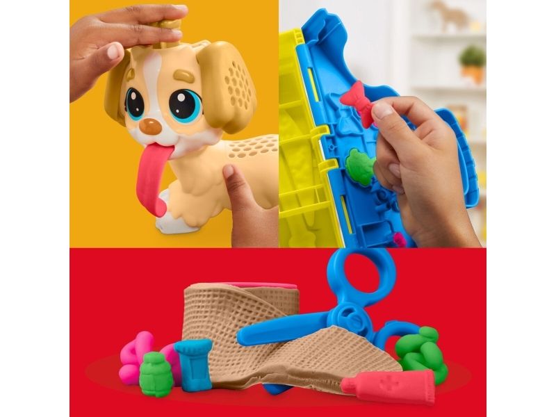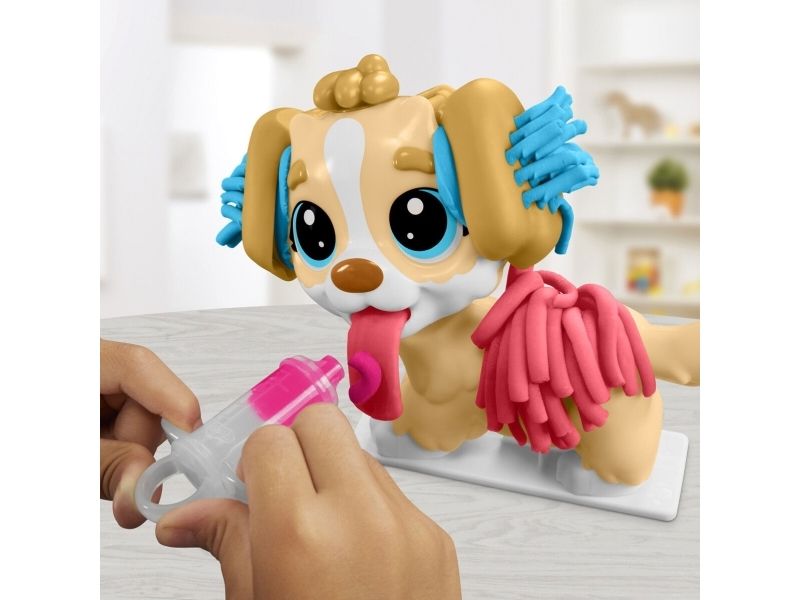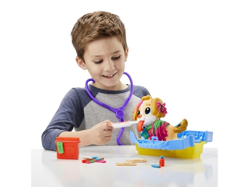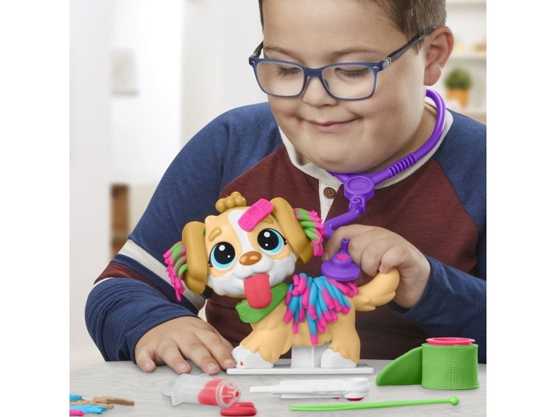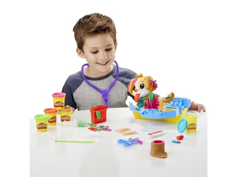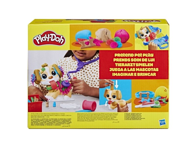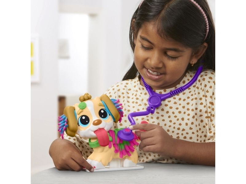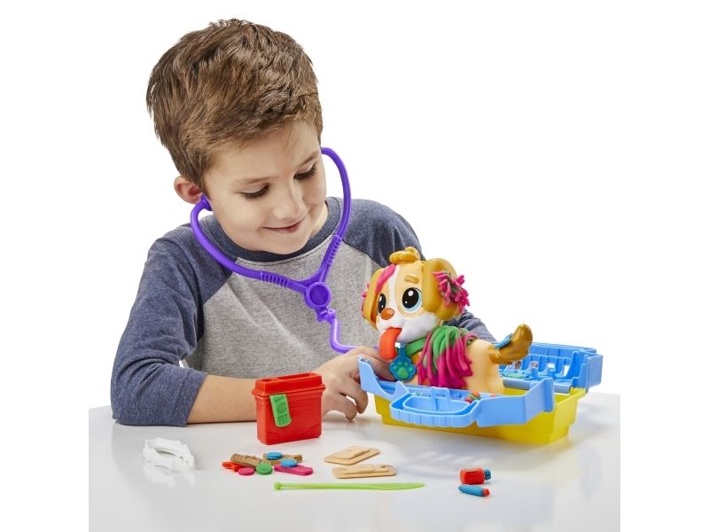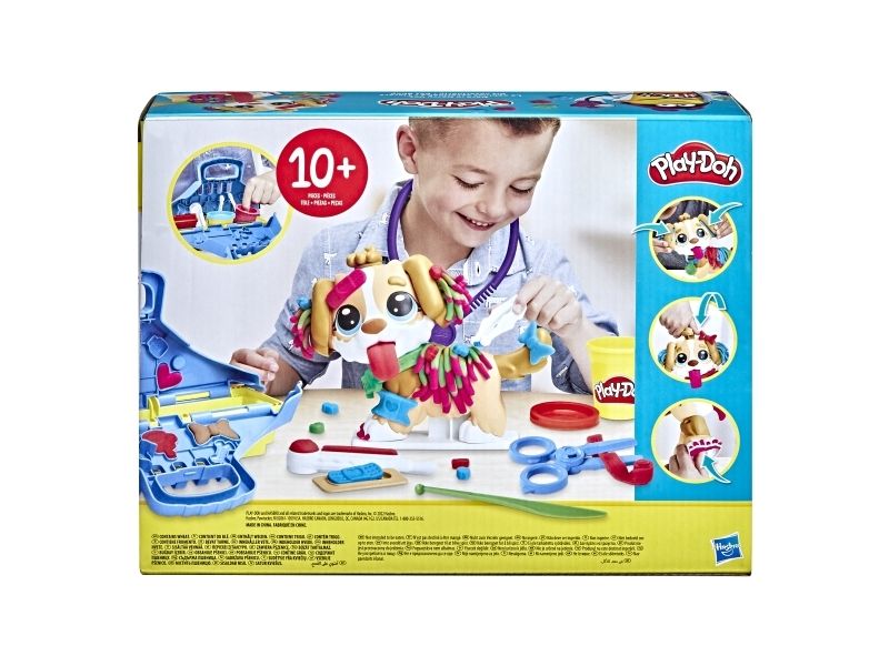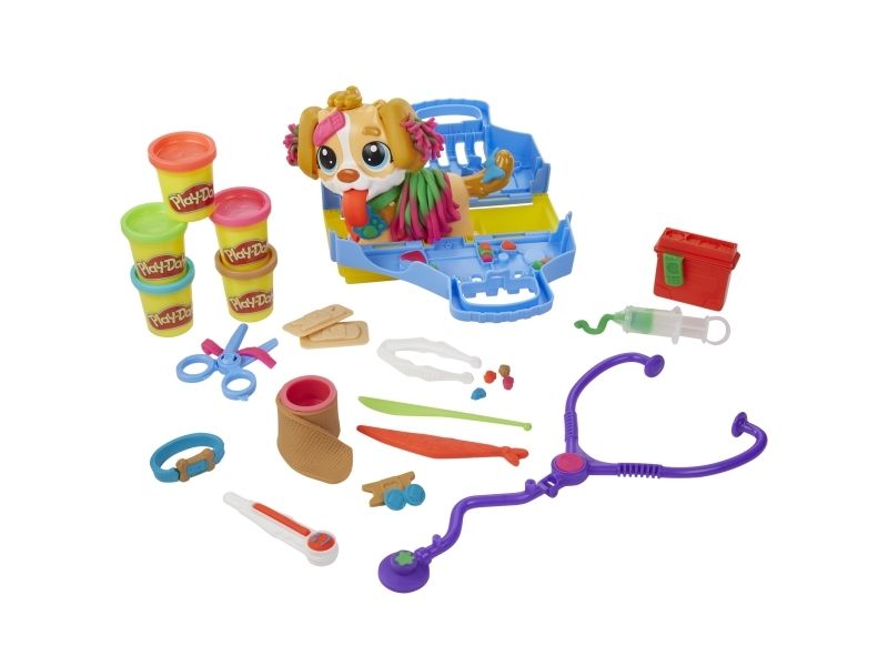 Det är dags att undersöka valpen! Det finns många sätt att vara kreativ och leka veterinär på, så veterinärleksaken för barn från 3 år lär bli en favorit bland alla små djurälskare. Styla och ta hand om leksakshunden genom att låta Play-Doh-håret växa, ge den en ny frisyr och ta bort Play-Doh-lopporna med pincetten. Starta undersökningen genom att ge valpen en lång Play-Doh-tunga och använd de tio veterinärsredskapen, inklusive bland annat ett leksaksstetoskop och en termometer. Veterinärsetet inkluderar modellera i fem klassiska färger och är en perfekt aktivitet, födelsedagspresent eller överraskning! Hasbro, Play-Doh och alla tillhörande egendomar är varumärken som tillhör Hasbro.