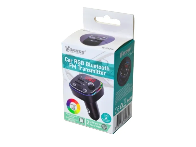 VAKOSS®FM transmitter is manufactured with high-quality materials. It features wide applicability and simple operation to bring you a different level of convenience and enjoyment.Vakoss TC-B439K. FM band range: 87.5 - 108 MHz. Display: LED. Device interface: Bluetooth/USB, Bluetooth functions: Handsfree calling. Compatible memory cards: MicroSD (TransFlash), Maximum memory card size: 32 GB, Maximum USB flash drive size: 32 GB. Power source type: DC, DC input voltage: 12 -24 V, Output voltage: 5 V