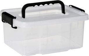 Product type- Storage boxes with lid. Brand- Plast Team. Length- 37.5 cm. Width- 28.5 cm. Height- 16.8 cm. Box capacity- 11.5 l. Colour- Transparent, Black. Material- Plastic. Mandatory warranty- 24 mo.