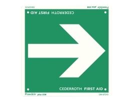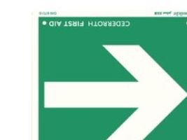 Första hjälpen-skylt Cederroth, pil, grön/vit