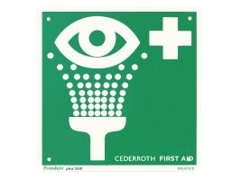 Första hjälpen-skylt, Cederroth, för ögonskölj, grön/vit, 20 x 20 cm