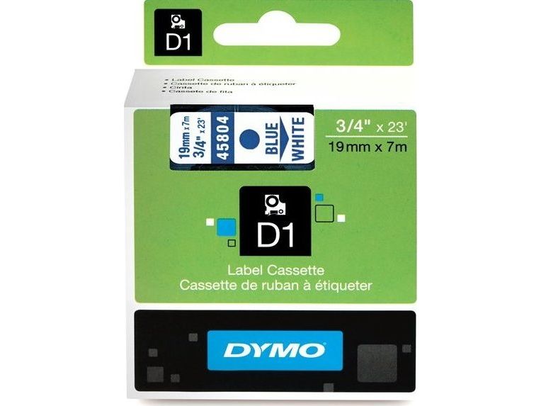 Dymo TASMA D1 DYMO D0 skrivartape blå text på vit 19 mm x 7 m