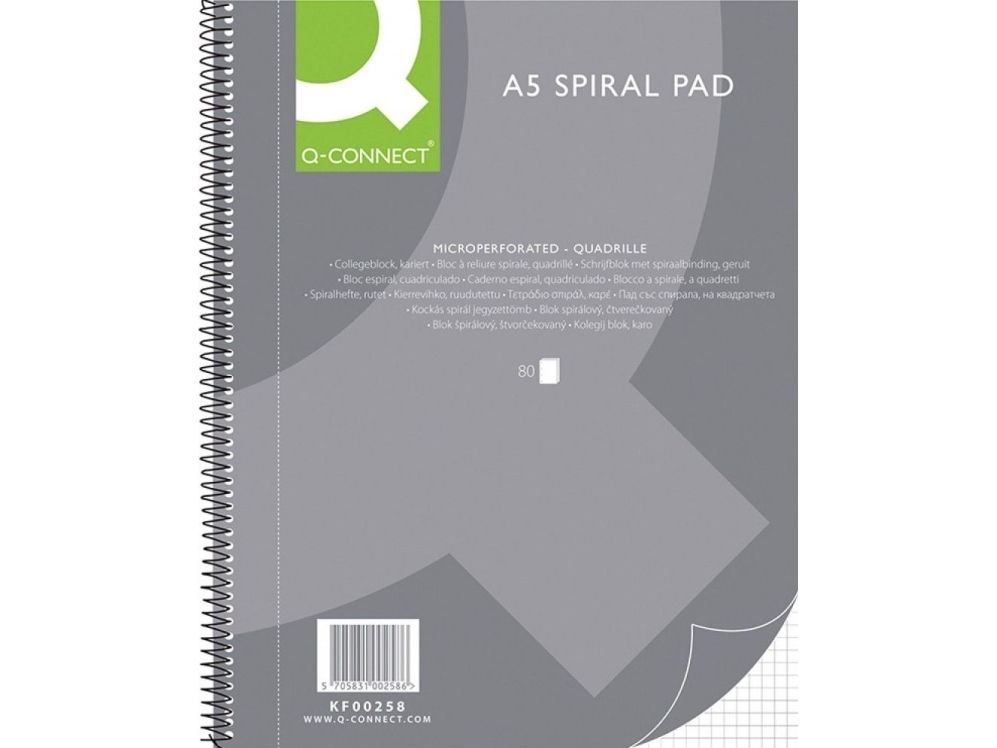 Q-Connect kollegieblock A5, rutigt, 80 blad, Q-CONNECT