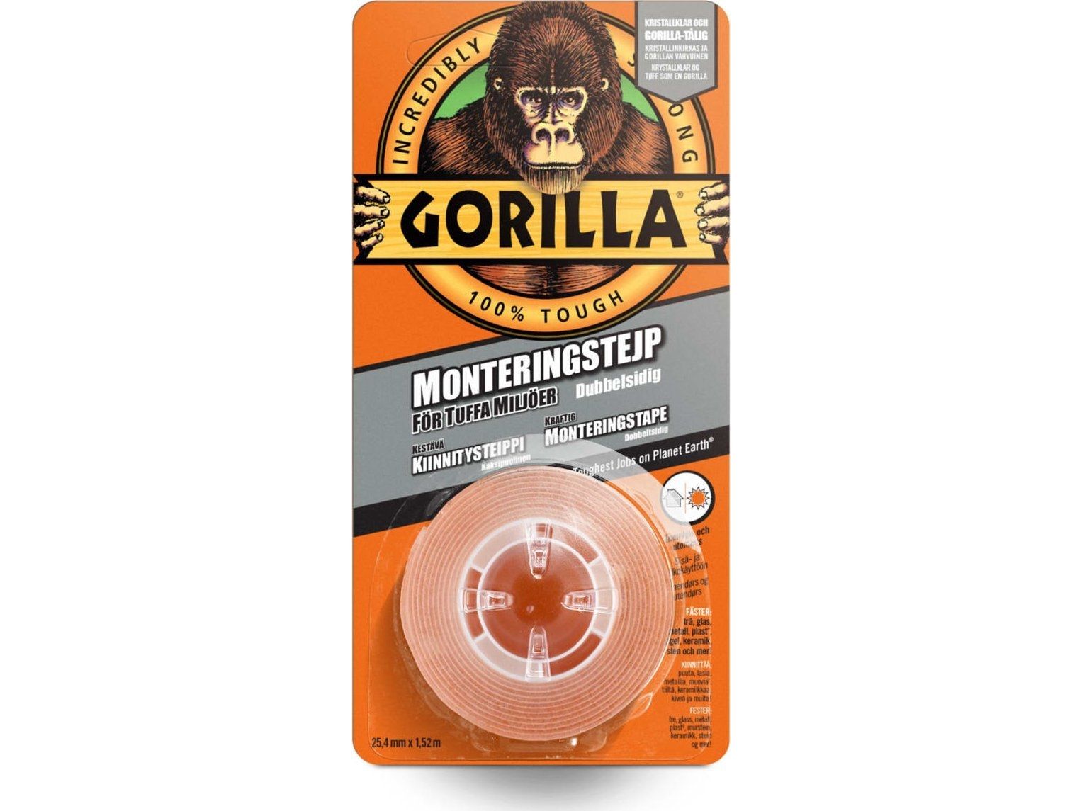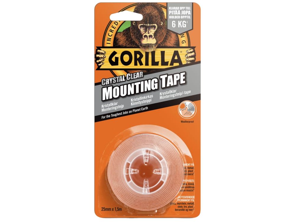 Gorilla Kristallklar monteringstejp 25 mm. - 1,5 meter