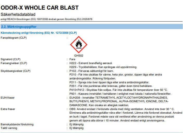 Produktet trænger dybt ind i bilens ventilationssystem og cirkulerer gennem hele kabinen, hvor det neutraliserer lugt fra eksempelvis røg, fugt, kæledyr og mad. Samtidig efterlader det ingen rester, men kun en behagelig og diskret duft.