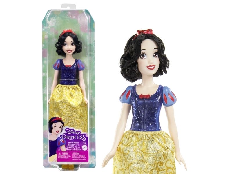 Möt Snövit-dockan, inspirerad av den snälla och tåliga prinsessan från Disneys Snövit och de sju dvärgarna. Den här poserbara modedockan är klädd i en glittrig outfit och accessoarer som skor och hårband. Snövit-dockan ser ut precis som i filmen och är redo för alla äventyr! Dockan kan inte stå utan hjälp. Färger och dekorationer kan variera.