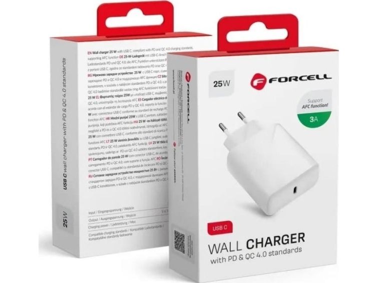 Forcell nätladdare universell USB Type-C - 3A 25W med laddningsfunktion PD och QC 4.0