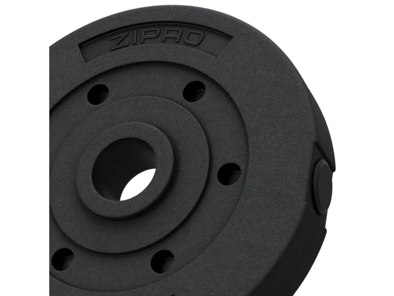 Bitumenbelastning från ZIPRO är en mångsidig lösning oavsett vilken typ av viktträning du väljer. Hålet med en diameter på 31 mm gör att vikterna passar de oftast använda stängerna med en diameter på 28 mm. På så sätt är det bara en sekund att fästa dem på en skivstång eller hantel.