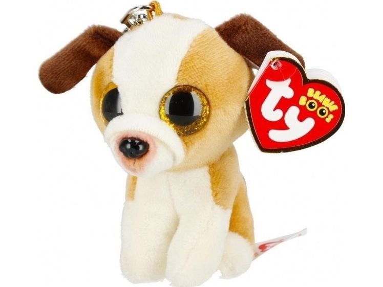 TY BOOS HUGO plyschnyckelring - brun/vit clips hund 8,5 cm 35258