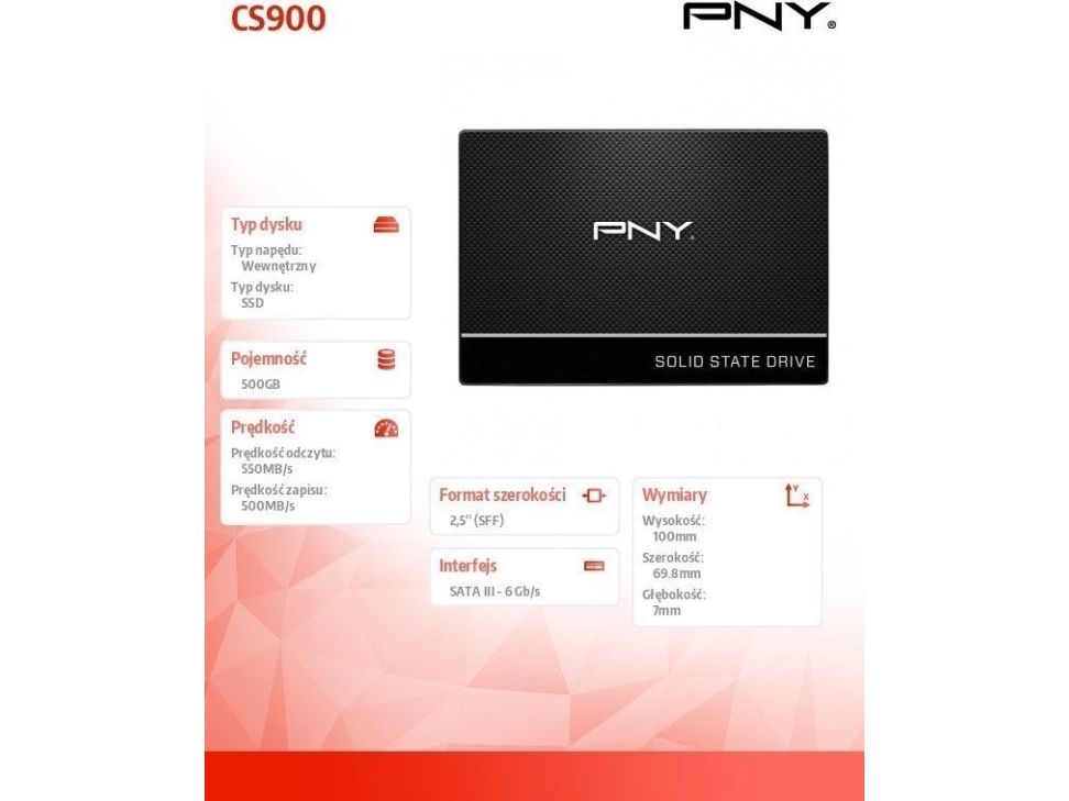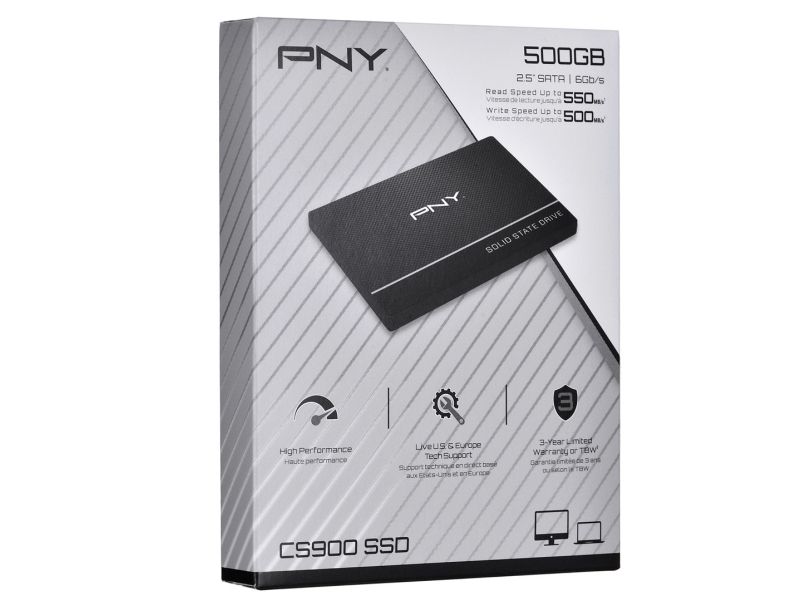 The PNY CS900 2.5-inch SATA-III solid-state drive is the value performance line of PNY SSDs. It is an excellent choice for an entry-level upgrade from a hard disk drive (HDD). The PNY CS900 was designed to be an easy and cost-effective HDD replacement for your existing PC system, without having to sacrifice performance. Upgrading to the CS900 SSD will help you experience an overall performance boost. Boot up, power down, and load applications in seconds. The PNY CS900 is an excellent choice for energy efficiency and consumes significantly less power than hard drives. Users can benefit from lower power usage, longer battery life, and a cooler, quieter system. Spend more time enjoying your system and less time worrying about battery consumption.