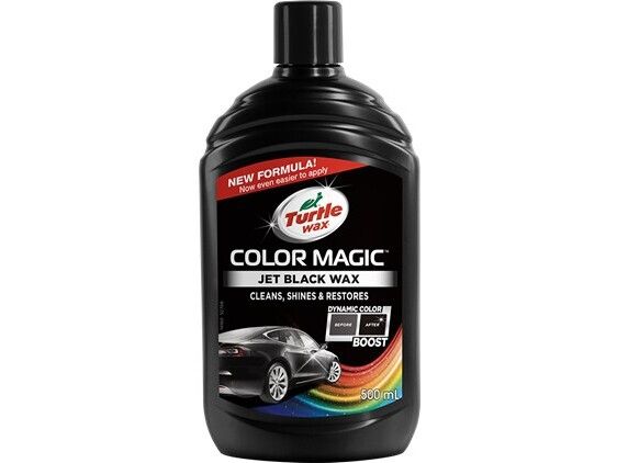 Turtle Wax Color Magic återställer lacken till dess ursprungliga färg och djupa glans. Ytliga repor och virvlar täcks av färgpigmentet som finns i detta vax. Pigmenten täcker tillfälligt repor från biltvätten eller andra repor som lacken/bilen får under sin livstid. En perfekt produkt för dig som inte vill polera din bil, utan bara vill ha en fin lack då och då. Håller inte för evigt, men en bra produkt för att få din bil att glänsa. Detta vax innehåller pigment i svart, om du behöver en annan färg kan du hitta urvalet högre upp på denna sida.