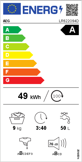 Discover the AEG 6000 Series LR622O94D washing machine, designed to bring efficiency and convenience into your laundry routine. This freestanding, front-loading washer has a generous 9 kg capacity, perfect for handling large loads, and a robust 1400 rpm spin speed to reduce drying time. With an Energy Class A rating, it offers eco-friendly operation without compromising performance. Specialized washing programs, including ECO 40-60 and MyMix 69', cater to all types of laundry, ensuring your clothes receive the care they need. The ProSense technology optimizes washing time and energy use, making every cycle efficient. Safety features like Aqua Control and child security provide peace of mind, while the adjustable feet and front panel controls ensure ease of use. Whether you're washing delicate woolens or a full load of cotton, the AEG 6000 Series LR622O94D is equipped to meet your needs, making it an ideal addition to any home.