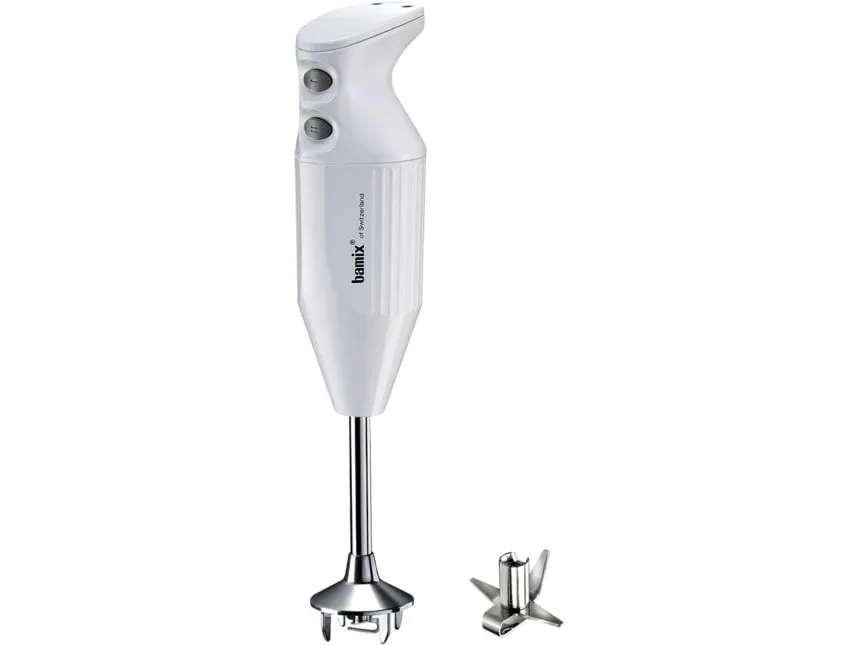 The durable, robust, "Made in Switzerland" AC motor ensures perfect functioning and a powerful performance. The ergonomic handle sits comfortably in the hand and is operated with two speed setting buttons. The unique anti-spatter design makes our bamix® stand out clearly from other products. Perfect cooking results are achieved quickly and cleanly. Simple, fresh and healthy. Just as easy to clean as it is to operate - the bamix® is cleaned in seconds and ready for use again.Bamix ONE. Rotational speed (min): 10000 RPM, Rotational speed (max): 15000 RPM, Control type: Buttons. Type: Immersion blender, Product colour: White. Power: 160 W, Power source: AC, AC input voltage: 220 - 240 V