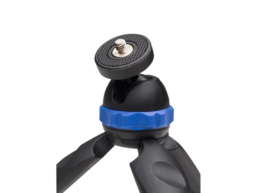 Benro’s PocketPod can be used as a tabletop tripod as well as a handgrip for smartphones, GoPro or DSLR cameras. Small enough to fit in your pocket, the PocketPod is made of high quality plastic with non-slip rubber feet and an all metal ball. The integrated ball head allows camera positions from horizontal to vertical and can be securely locked in any position with a quick twist of the locking ring. Each leg has two grooves for a more comfortable and secure grip when using as a handgrip. The PocketPod supports up to 3.3 pounds while weighing only 5.6 ounces (.35 lb). Its built-in ball head has a 1/4"-20 camera screw and a unique design that allows adjustments and locking with a single twist of the locking ring.Benro PP1. Maximum weight capacity: 1.5 kg, Number of legs: 3 leg(s). Height (max): 13.5 cm. Product colour: Black, Blue