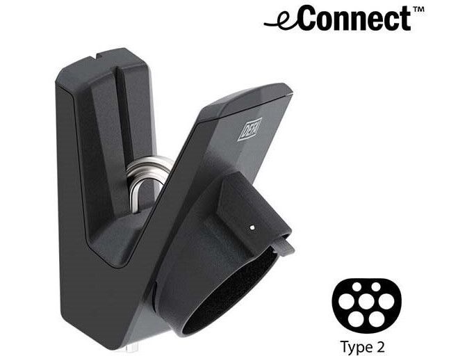 Med eConnect-dockingstation er opladningskablet til din elbil beskyttet, når du ikke bruger det. EConnect-dockingstationen er let at montere på enhver væg, så du kan opbevare ladekablet pænt og beskytte det mod tyveri og ved et uheld blive kørt over. Dockingstationen forhindrer også vand og snavs i at trænge igennem opladningsstikket.