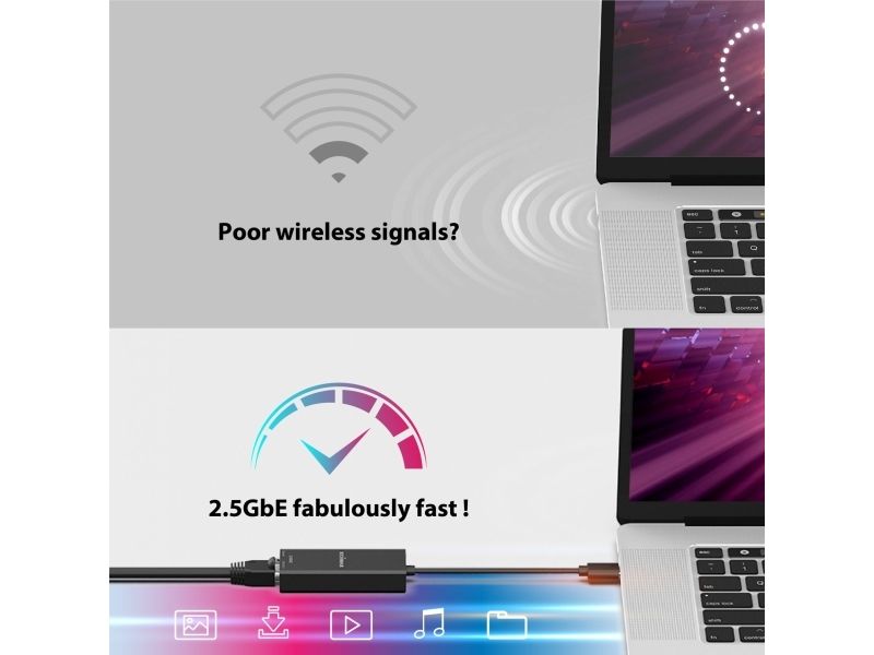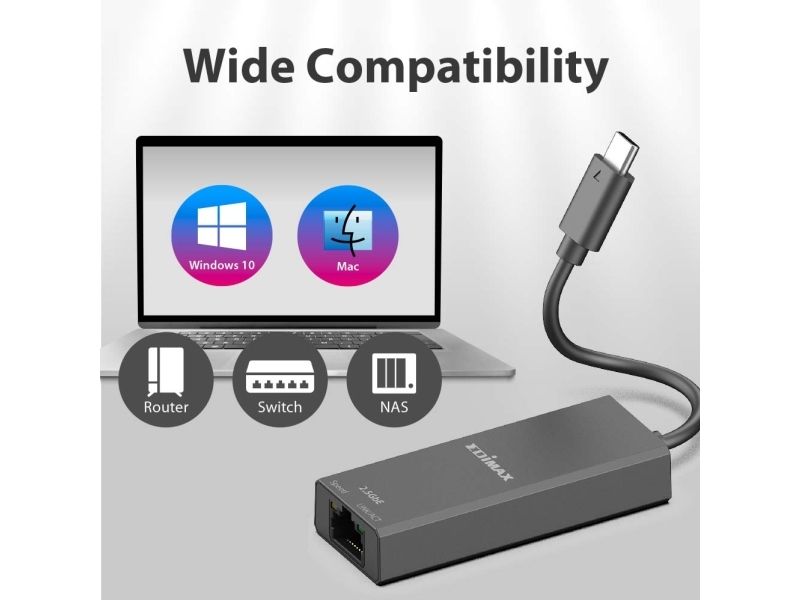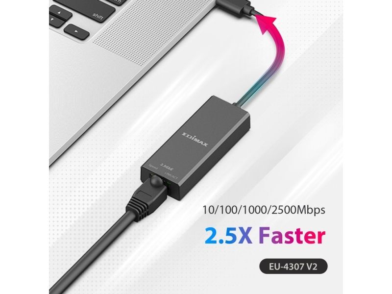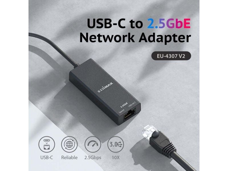The Edimax EU-4307 V2 network adapter is a high-performance device designed to meet the demands of modern networking. Offering support for Ethernet speeds up to 2.5 Gbps, it ensures rapid data transfer that can keep pace with the needs of both home and office environments. This adapter is equipped with a USB-C 3.1 interface, making it compatible with a wide range of devices. With compliance to various IEEE standards, the EU-4307 V2 is compatible with existing network infrastructures, while features like Quality of Service (QoS) and VLAN support provide enhanced network management capabilities. Additionally, its robust design allows it to operate reliably across a wide range of temperatures and humidity levels, ensuring consistent performance. Whether for streaming, gaming, or professional use, the Edimax EU-4307 V2 is an excellent choice for anyone looking to upgrade their network connectivity.