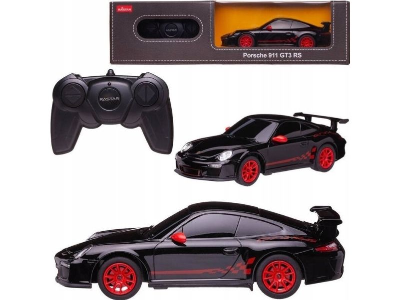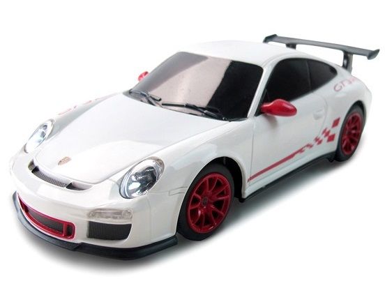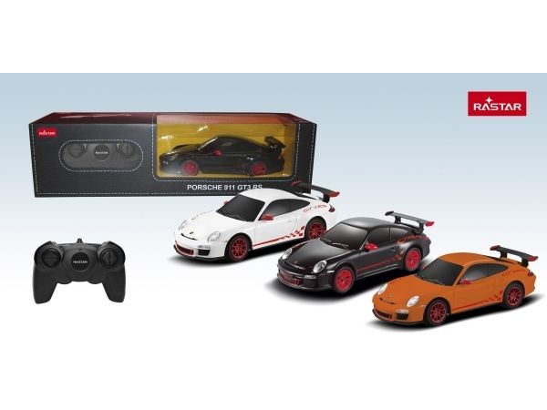 Den här radiostyrda Porsche GT3 RS bilen har ett autentiskt design, en formgjuten kaross och oberoende fjädersystem. Bilen kan köra framåt, bakåt och svänga till både höger och vänster. Från 6 år.