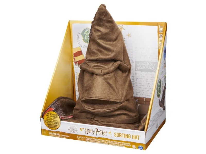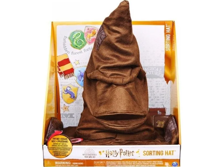 Includes: 1 Sorting Hat, 1 Instruction GuideWizarding World Harry Potter, Talking Sorting Hat with 15 Phrases for Pretend Play, Kids Toys, Accessory for Costumes for Girls & Boys. Theme: Movie, Recommended age (min): 5 yr(s), Recommended age (max): 99 yr(s). Battery type: AA. Batteries included. Number of batteries supported: 3. Product colour: Brown. Weight: 730 g